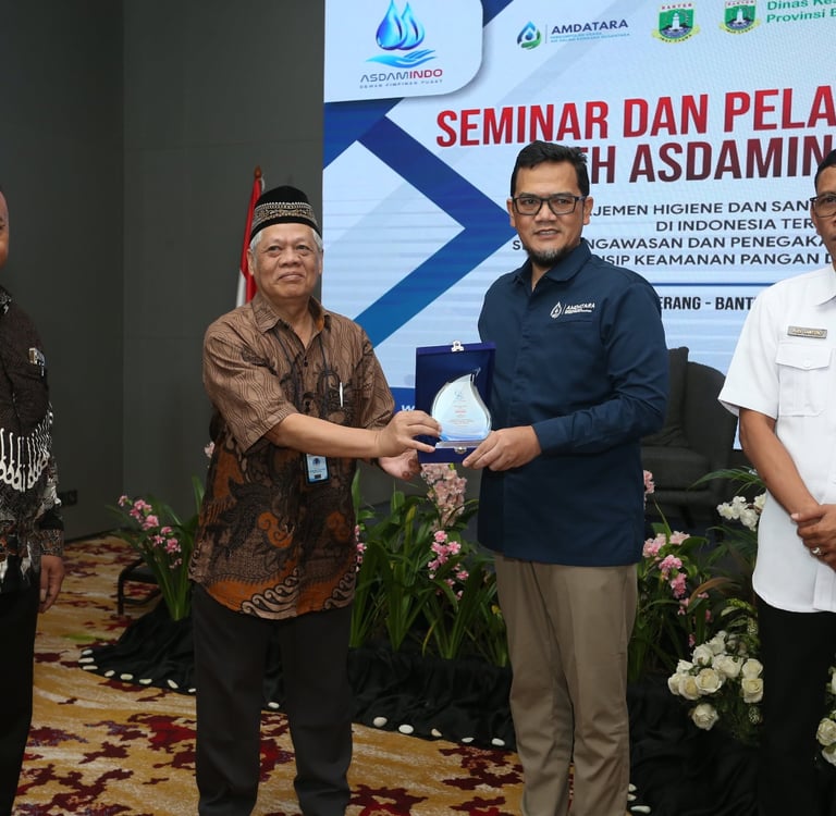 AMDATARA menegaskan komitmennya dalam mendukung peningkatan kualitas dan keamanan air minum nasional dengan menghadiri serta mendukung pelaksanaan Seminar dan Pelatihan Manajemen Higiene dan Sanitasi Depot Air Minum, yang diselenggarakan oleh ASDAMINDO
