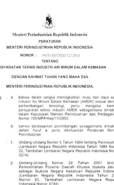Persyaratan Industri Teknis AMDK